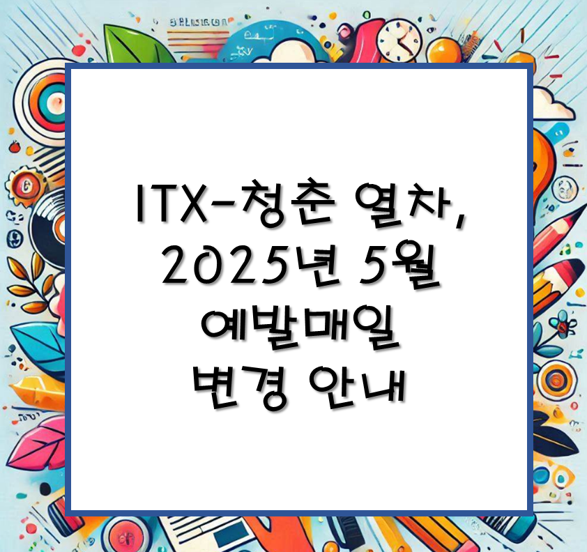 서울과 춘천을 오가는 인기 열차인 ITX-청춘 열차의 2025년 5월 예발매일이 변경되었습니다. 이에, 변경된 예발매 개시일과 ITX-청춘 열차에 대해서 알아보는 시간을 가져 보겠습니다.